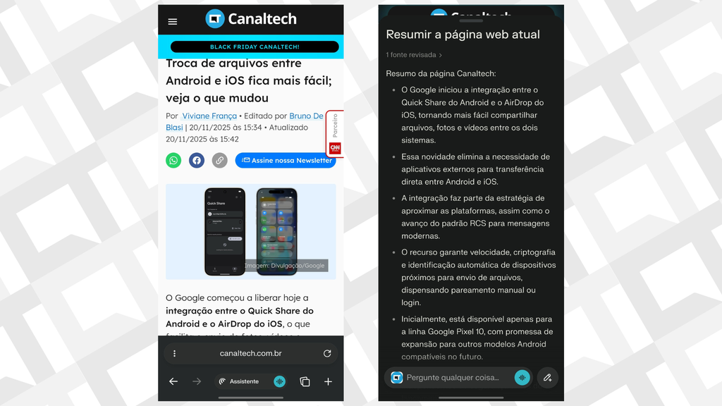 É a primeira vez que um “navegador de IA” ganha uma versão para celulares. Outros modelos do segmento, como o Opera Neon, o ChatGPT Atlas e até o Chrome turbinado com o Gemini ainda são limitados aos computadores (alguns modelos, como o Opera, possuem um chatbot integrado, mas não têm funções agênticas).