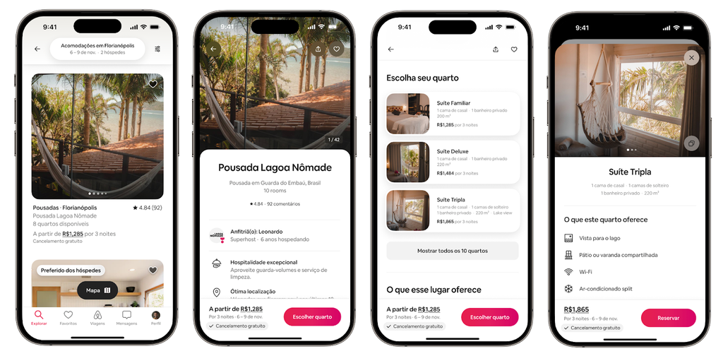 A experiência não muda para anúncios individuais ou de casas do mesmo anfitrião na plataforma. Vale lembrar que neste ano o app passou a mostrar o valor total da estadia em cada local, incluindo todas as taxas disponíveis, antes de seguir ao checkout.