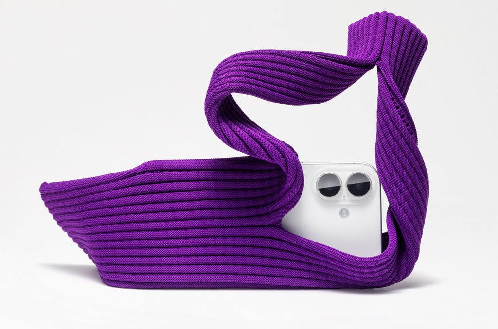 O iPhone Pocket apresenta uma estrutura tridimensional de malha 3D, um tecido elástico que se adapta a qualquer modelo de iPhone e até a outros objetos pequenos do dia a dia, como AirPods ou chaves. O design remete às famosas pregas da ISSEY MIYAKE, conhecidas por unir forma e funcionalidade.