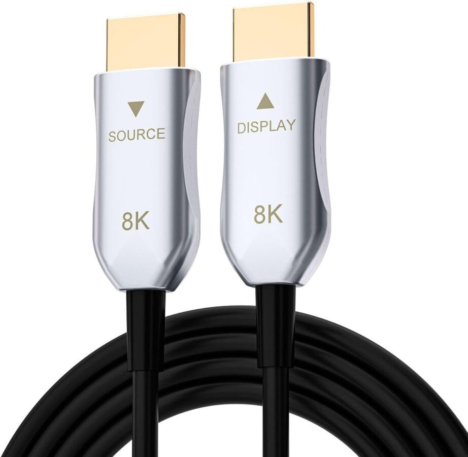 Na Kabum, modelos com adaptador de fibra para HDMI saem por R$ 465,00 (10 metros) e R$ 859,90 (50 metros).