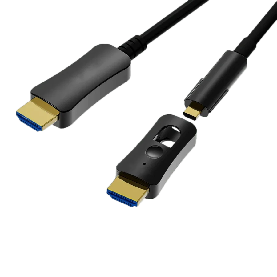 Para usuários que precisam de um cabo HDMI com mais de 7,5 metros, é relevante procurar cabos HDMI ativos. Eles custarão mais do que a maioria dos cabos HDMI passivos, mas graças aos amplificadores e reforçadores de sinal integrados, fornecem uma conexão sólida mesmo quando estendidos por 30 metros ou mais.