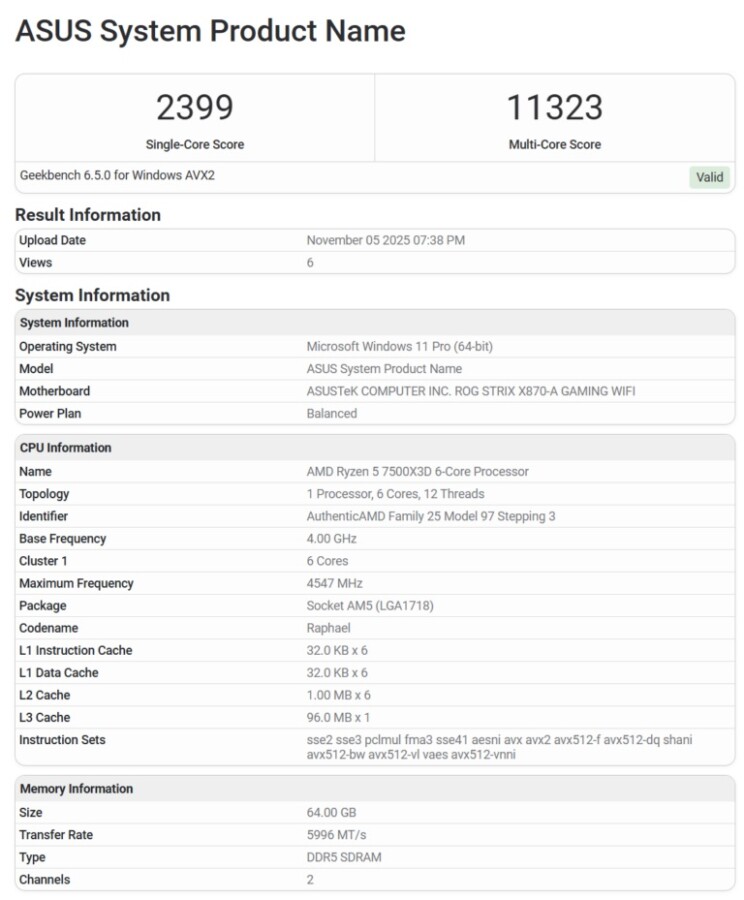 Ryzen 5 7500X3D vaza no Geekbench, revelando seu possível clock