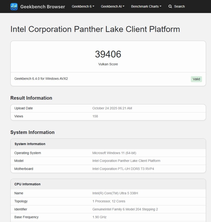 Core Ultra 5 338H da série Panther Lake aparece em teste, revelando iGPU Arc B370