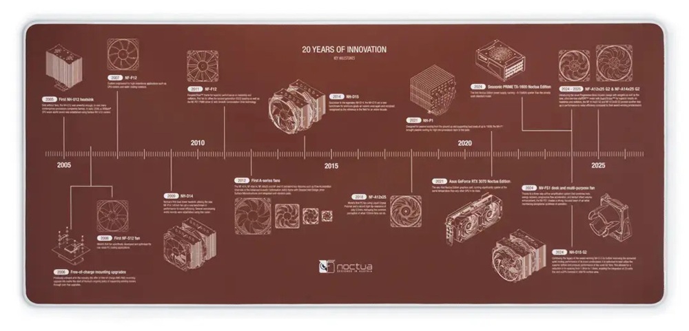 Noctua comemora 20 anos com novo mousepad que conta sua história