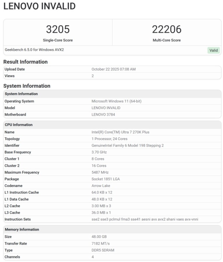 Intel Core Ultra 7 270K Plus é o primeiro Arrow Lake Refresh a aparecer em vazamento