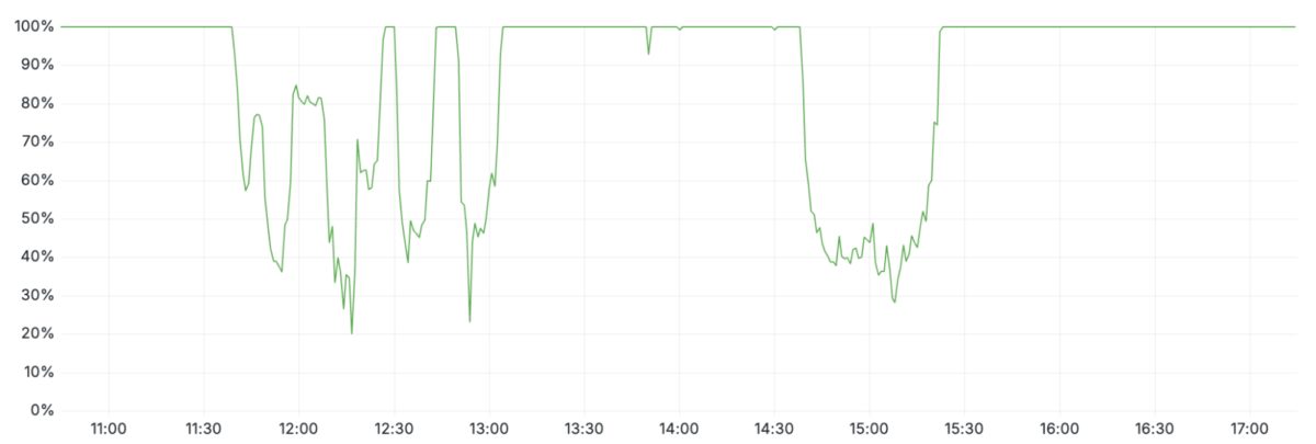 O comportamento intermitente, com ciclos de aproximadamente cinco minutos entre quedas e breves recuperações, confundiu a equipe técnica. O padrão lembrava um DDoS massivo, principalmente porque até a página de status (hospedada fora da infraestrutura da empresa) caiu por coincidência no mesmo período.