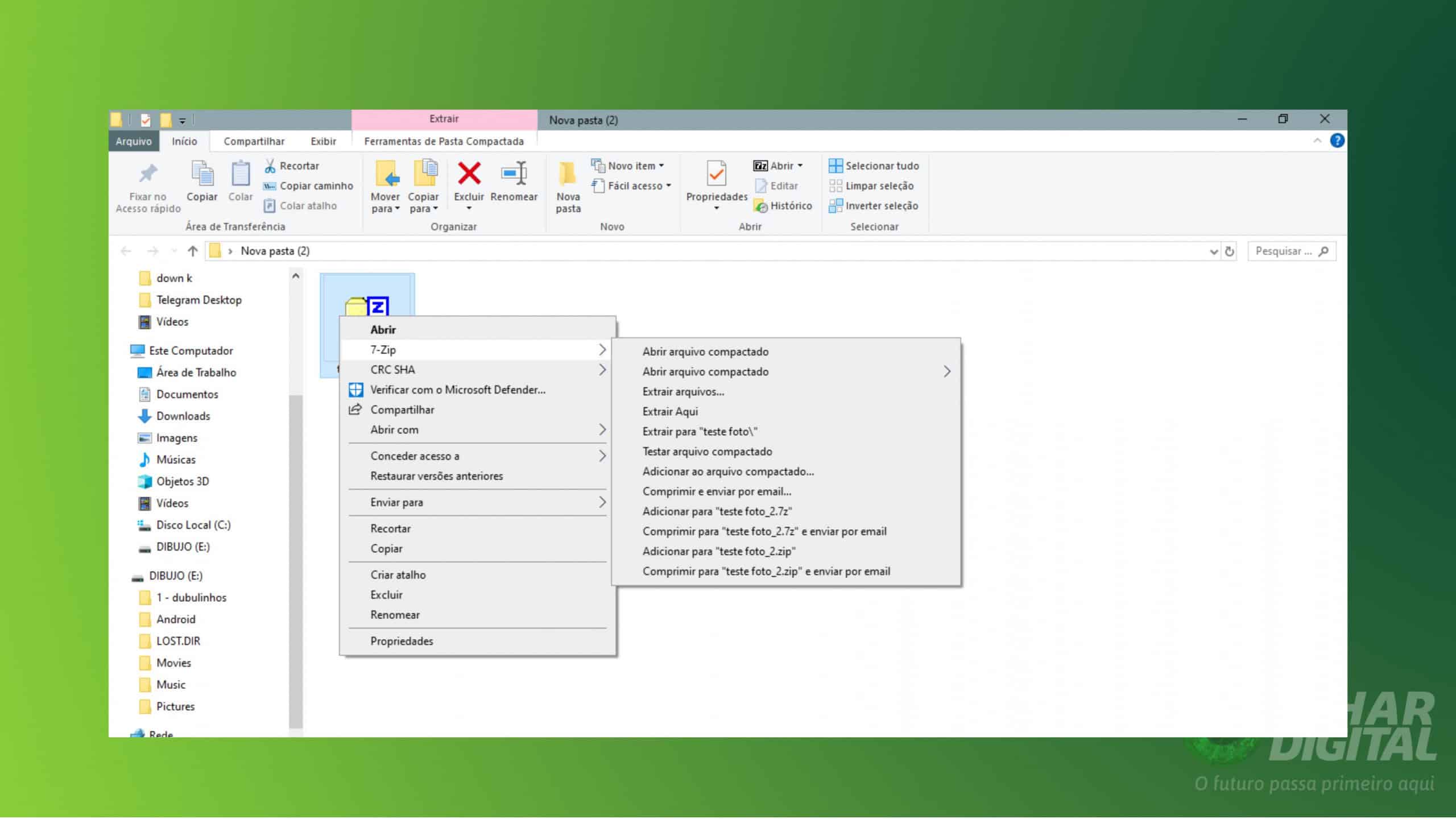Abra o arquivo .zip usando o explorador de arquivos do seu computador para visualizar seu conteúdo.