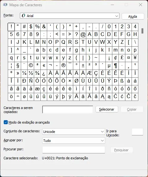 O Mapa de Caracteres é uma ferramenta nativa do Windows que exibe todos os símbolos disponíveis em uma fonte específica.