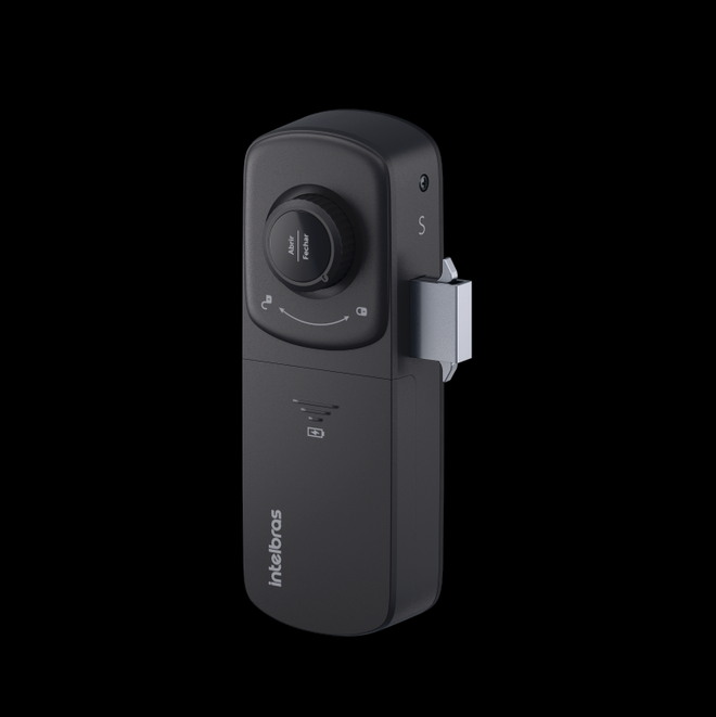 Outro diferencial é que essa é a primeira fechadura da Intelbras com bateria recarregável, entregando até 10 meses de autonomia e eliminando o gasto com pilhas. O carregamento é feito por USB.