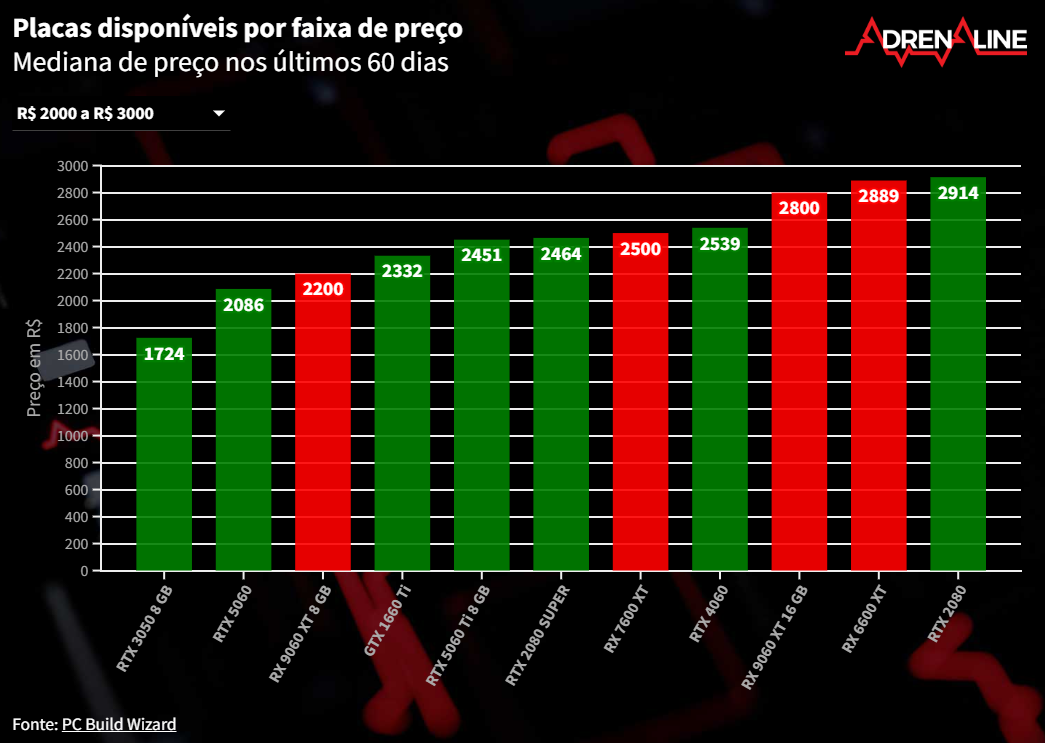 Placa de vídeo de R$ 2.000 a R$ 3.000: