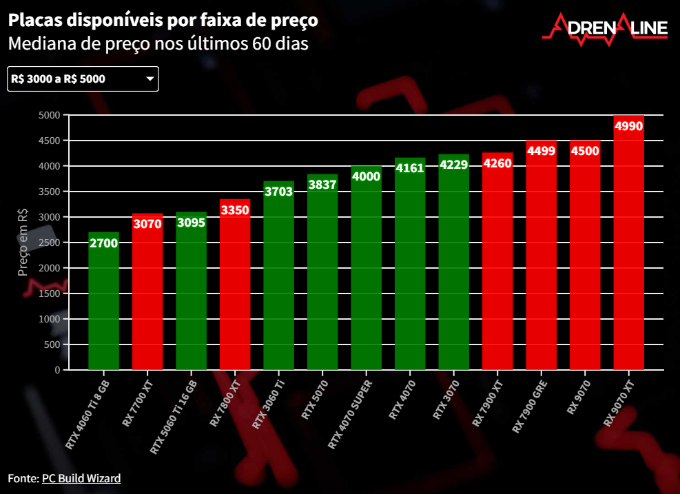 Placa de vídeo de R$ 3.000 a R$ 5.000: