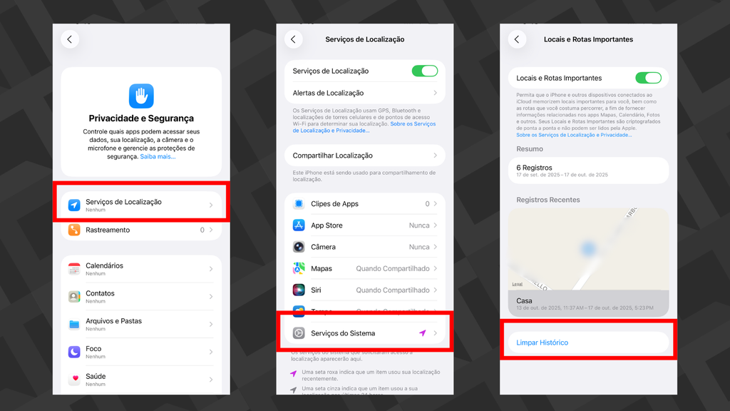 iPhone permite limpar histórico de serviços de localização (Imagem: Captura de tela/André Magalhães/MARQS)