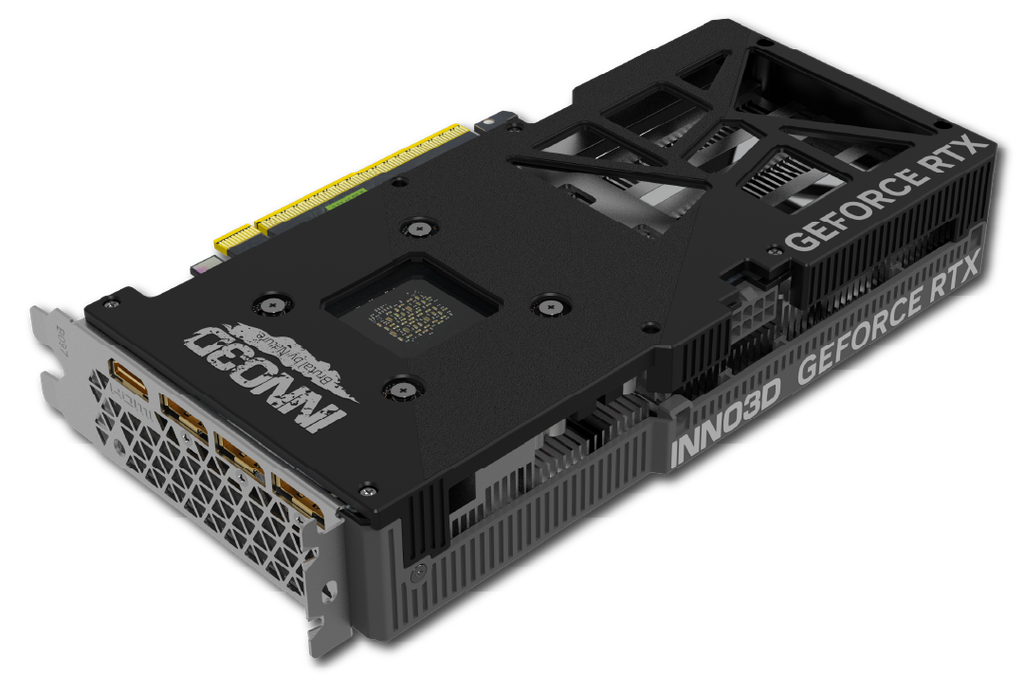 Esse modelo conta com um backplate que além de deixar mais estilizado, oferece maior rigidez à placa (Imagem: Inno3D/Divulgação)