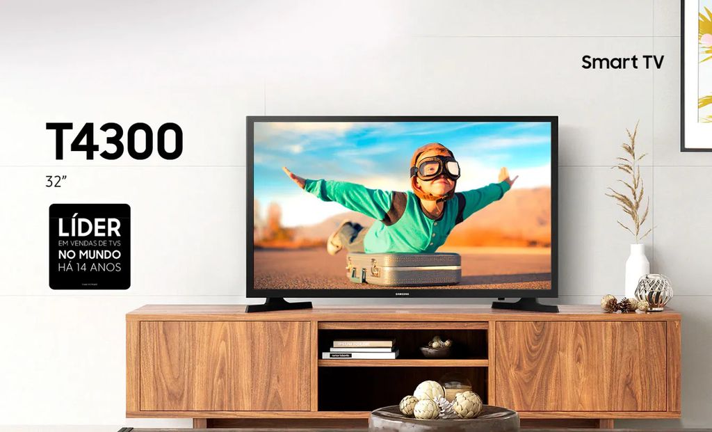Se você não está disposto a gastar tanto, o foco é encontrar uma TV simples, mas que cumpra bem suas funções básicas de streaming. A Smart TV Samsung T4300 de 32 polegadas seria uma boa opção, trazendo sistema Tizen, resolução HD e compatibilidade com apps populares.