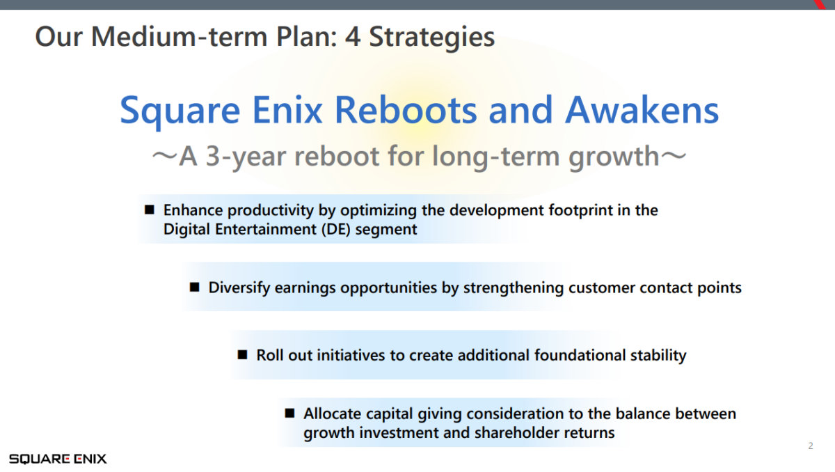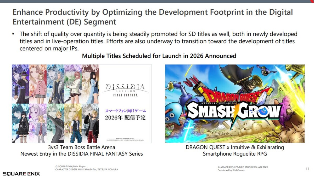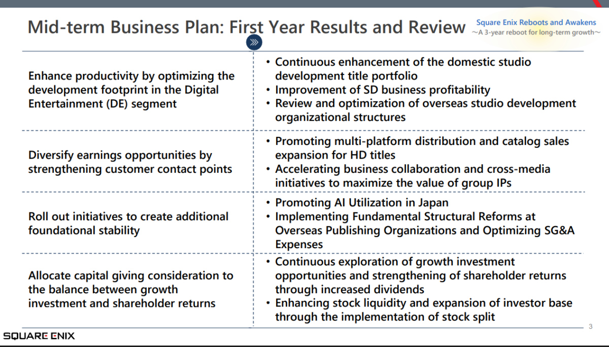 O relatório corporativo “Progress Report on the Medium-Term Business Plan”, publicado pela Square Enix em 6 de novembro de 2025, detalha pela primeira vez o alcance real das mudanças em curso.