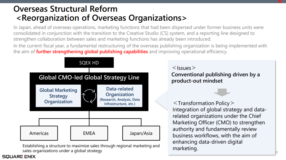 Mais um ponto relevante é a reestruturação completa da área de publicação ocidental, que passará de 11 divisões para apenas 4. A nova estrutura será liderada por um Chief Marketing Officer global (CMO), responsável por integrar dados, marketing e estratégia comercial sob uma visão unificada e orientada por métricas.