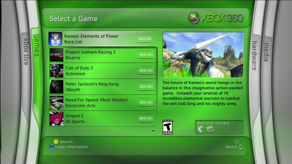 Nos jogos, a Microsoft apresentou na MTV sua line-up composta por Call of Duty 2, Perfect Dark Zero, Quake 4, Tony Hawk’s American Wasteland, Need for Speed: Most Wanted, Gears of War e muitos outros títulos. Mais de seis meses depois, os jogadores puderam experimentar todos esses e diversos outros games.