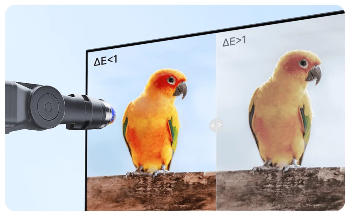 Uma das mudanças mais profundas está na calibragem de fábrica. Cada unidade passa por ajuste individual para atingir ΔE<1, valor que indica desvio mínimo entre a cor exibida e a referência real.